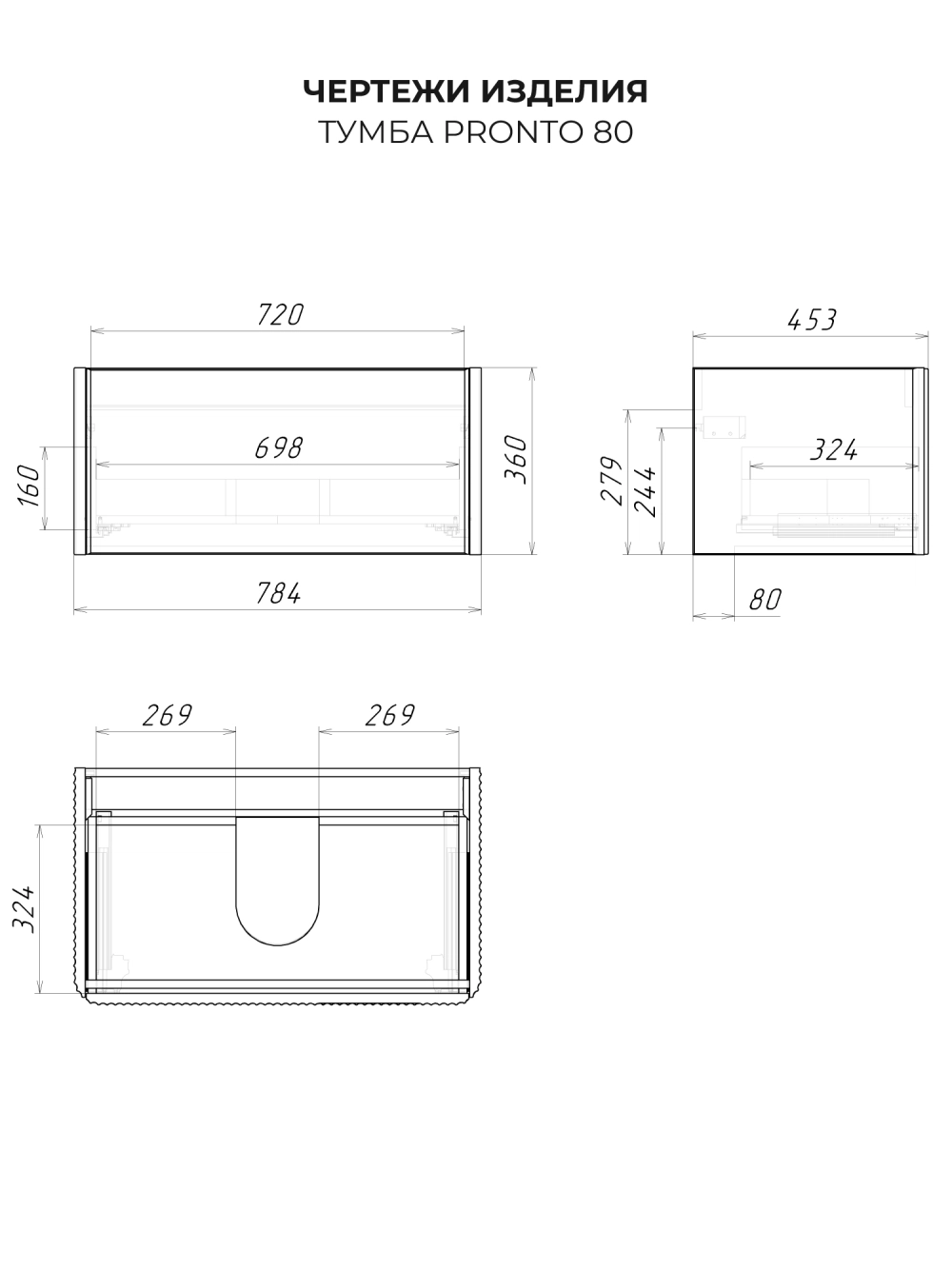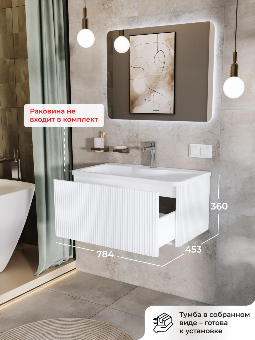 Тумба под раковину подвесная Итана Pronto 80 с выдвижным ящиком Бланж