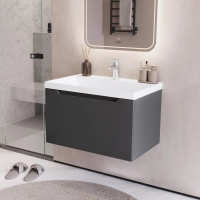Тумба под раковину в ванную ИТАНА Алара 70, подвесная, Графит, 1 ящик