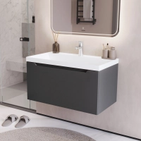 Тумба под раковину в ванную ИТАНА Алара 80, подвесная, Графит, 1 ящик