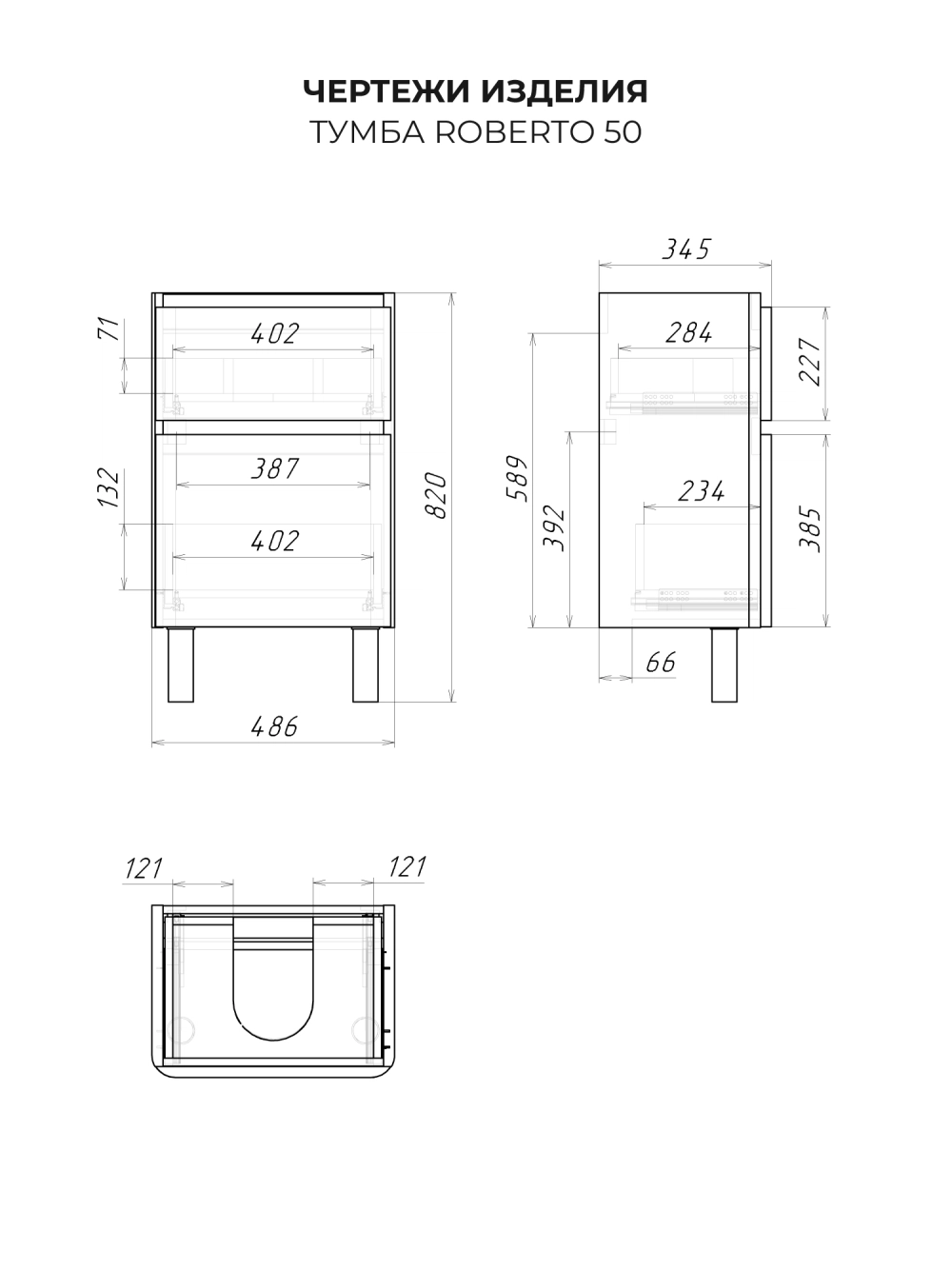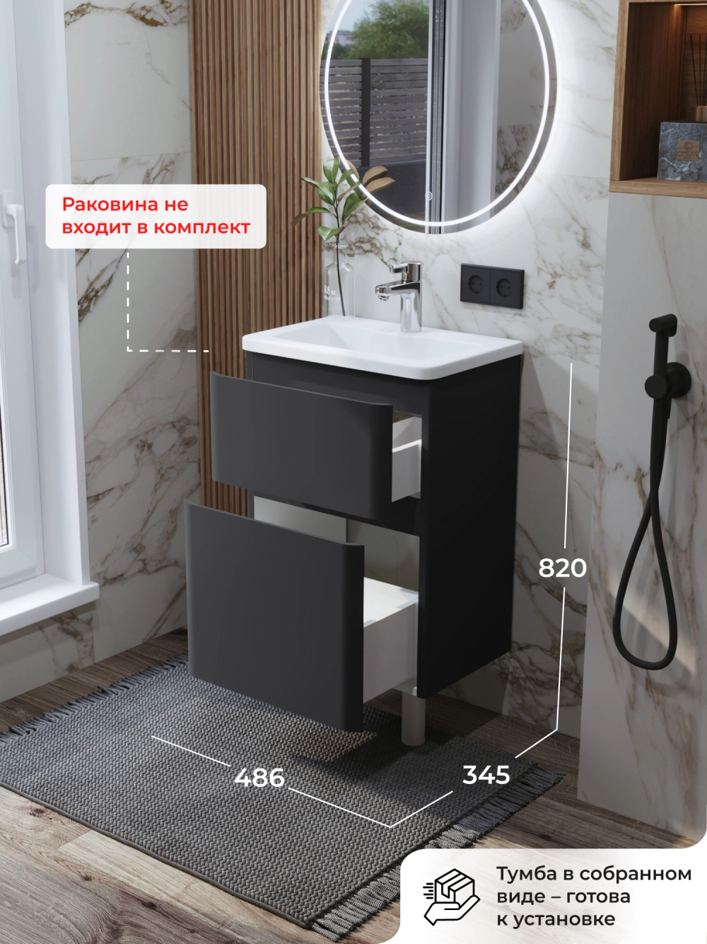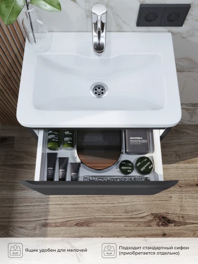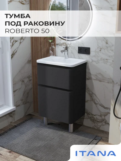 Тумба под раковину в ванную ИТАНА Роберто 50, напольная, Графит