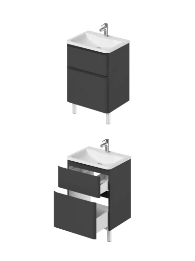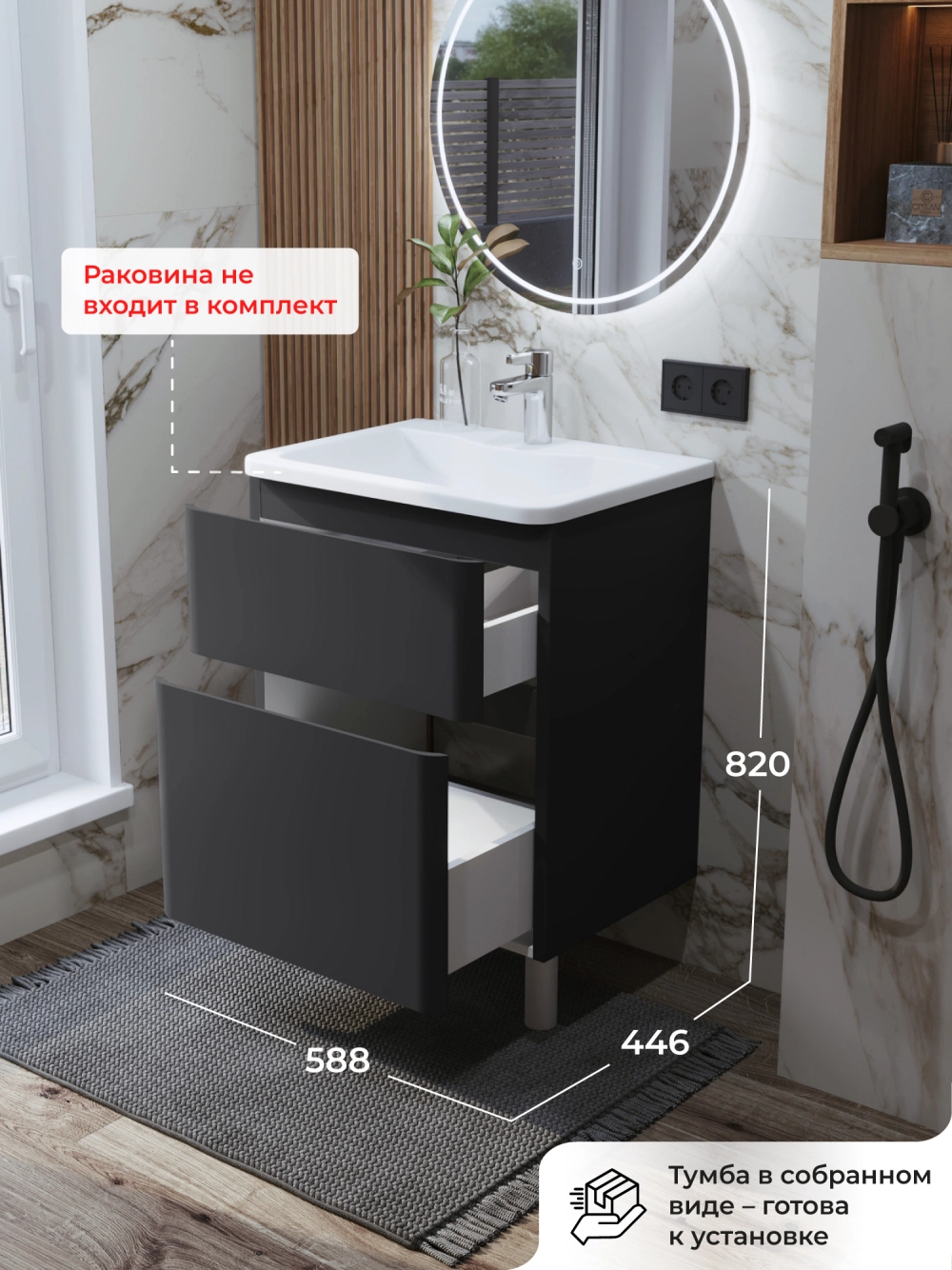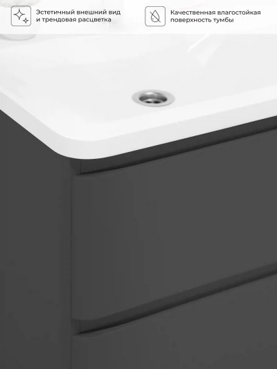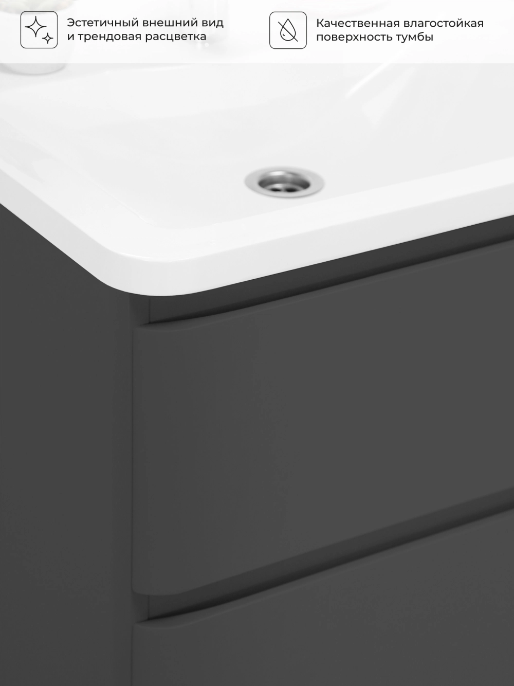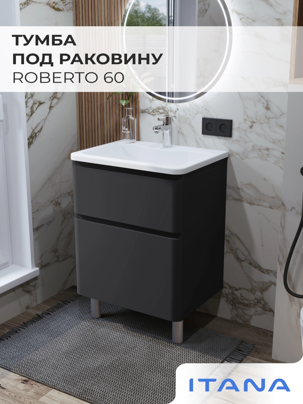 Тумба под раковину в ванную ИТАНА Роберто 60, напольная, Графит