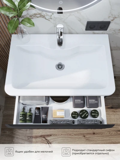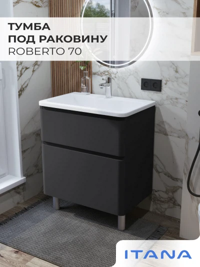 Тумба под раковину в ванную ИТАНА Роберто 70, напольная, Графит
