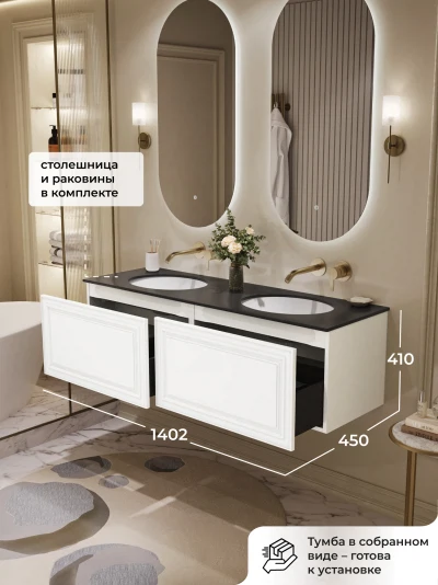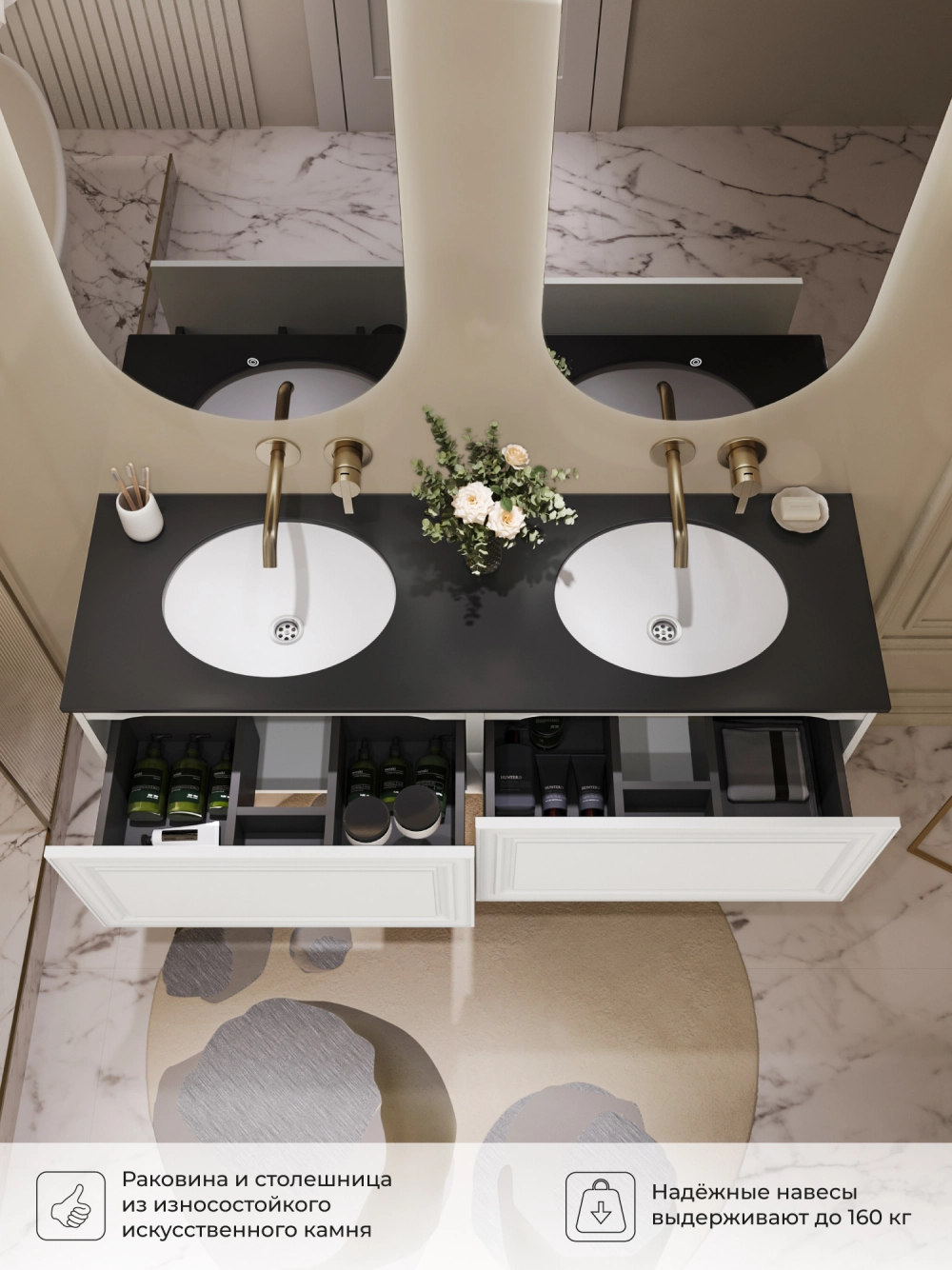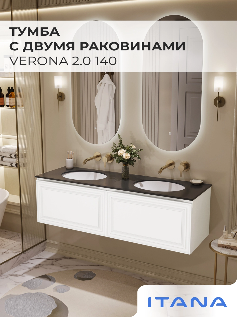 Тумба с двумя раковинами Итана Verona 2.0 140 с выдвижными ящиками Бланж