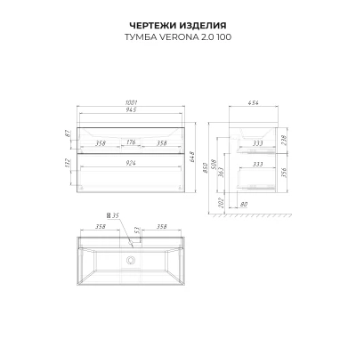 Тумба с раковиной Итана Verona 2.0 100 с выдвижными ящиками Керамик