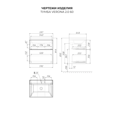 Тумба с раковиной Итана Verona 2.0 60 с выдвижными ящиками Керамик