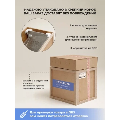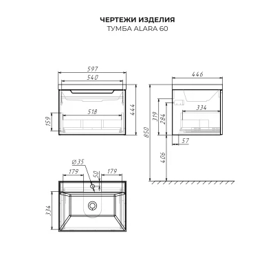 Тумба с раковиной в ванную Итана из коллекции Alara. Тумба в ванную отличается элегантным дизайном и качественным исполнением, прекрасно сочетая функциональность и эстетическую привлекательность. Размеры подвесной тумбы с раковиной 597*446*444 - идеальный выбор для ванной комнаты или туалета. Подвесная конструкция тумбы с раковиной позволяет сэкономить место на полу и визуально расширяет пространство. Тумба с раковиной в ванную подвесная выполнена из МФД, что гарантирует долговечность эксплуатации и износостойкость. Качественная фурнитура с доводчиками обеспечивает легкое открывание и плавное закрывание ящика. Тумба с раковиной с одним ящиком, в нем можно рационально распределить и разместить все необходимые вещи для ванной комнаты. Для точного выбора тумбы рекомендуем обратиться к схеме замеров, которая находится на фото в карточке товара. Размеры изделия могут отличаться +/-1 см в связи со спецификой производства. Подвесная тумба с раковиной приходит в надежной упаковке и в собранном виде.