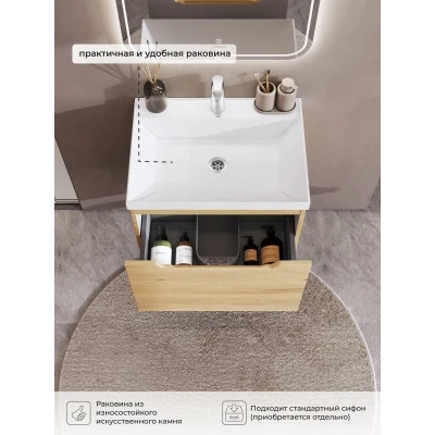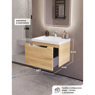 Тумба с раковиной подвесная Итана Alara 60 с выдвижным ящиком Дуб Мавелла Голд