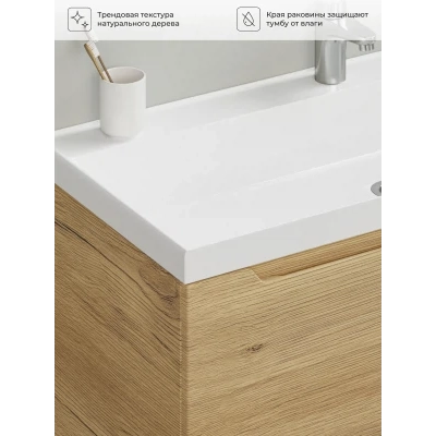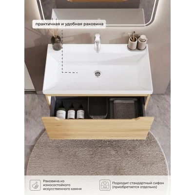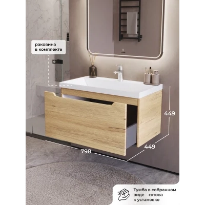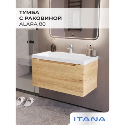 Тумба с раковиной подвесная Итана Alara 80 с выдвижным ящиком Дуб Мавелла Голд