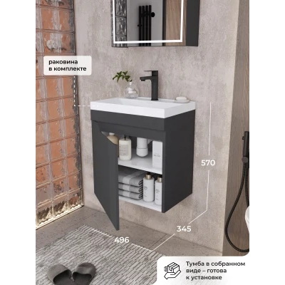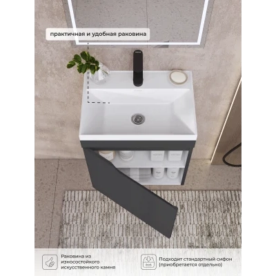 Тумба с раковиной подвесная Итана Alexa 50 с распашной дверцей левая Графит