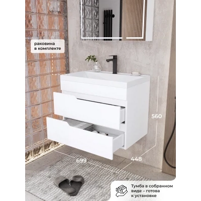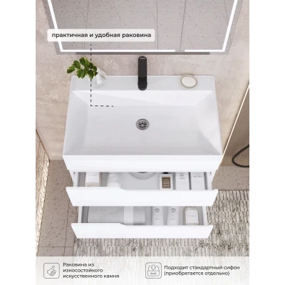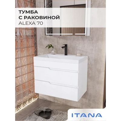 Тумба с раковиной подвесная Итана Alexa 70 с выдвижными ящиками Белый глянец