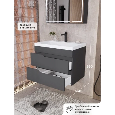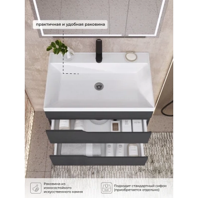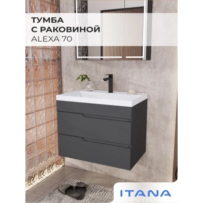 Тумба с раковиной подвесная Итана Alexa 70 с выдвижными ящиками Графит