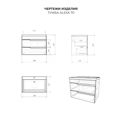 Тумба с раковиной в ванную Итана из коллекции Alexa. Тумба в ванную отличается элегантным дизайном и качественным исполнением, прекрасно сочетая функциональность и эстетическую привлекательность. Размеры подвесной тумбы с раковиной 699*448*560 - идеальный выбор для ванной комнаты или туалета. Подвесная конструкция тумбы с раковиной позволяет сэкономить место на полу и визуально расширяет пространство. Тумба с раковиной в ванную подвесная выполнена из МФД, что гарантирует долговечность эксплуатации и износостойкость. Качественная фурнитура с доводчиками обеспечивает легкое открывание и плавное закрывание ящиков. Ручки интегрированы в фасад, что исключает возможность случайного удара о фурнитуру. Тумба с раковиной с ящиками, где можно рационально распределить и разместить все необходимые вещи для ванной комнаты. Для точного выбора тумбы рекомендуем обратиться к схеме замеров, которая находится на фото в карточке товара. Размеры изделия могут отличаться +/-1 см в связи со спецификой производства. Подвесная тумба с раковиной приходит в надежной упаковке и в собранном виде.