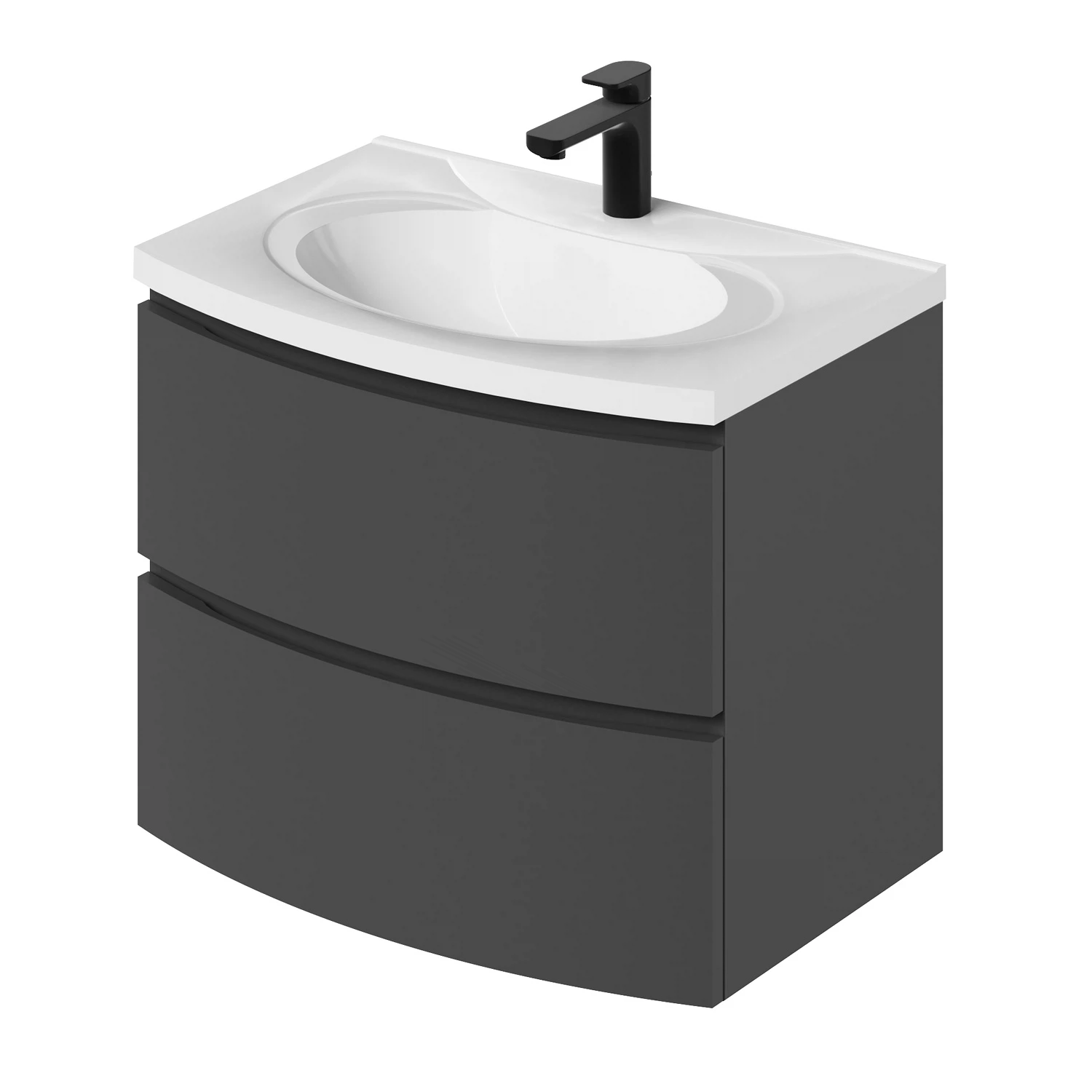 Тумба с раковиной подвесная Итана Arko Y 70 с радиусным фасадом Графит