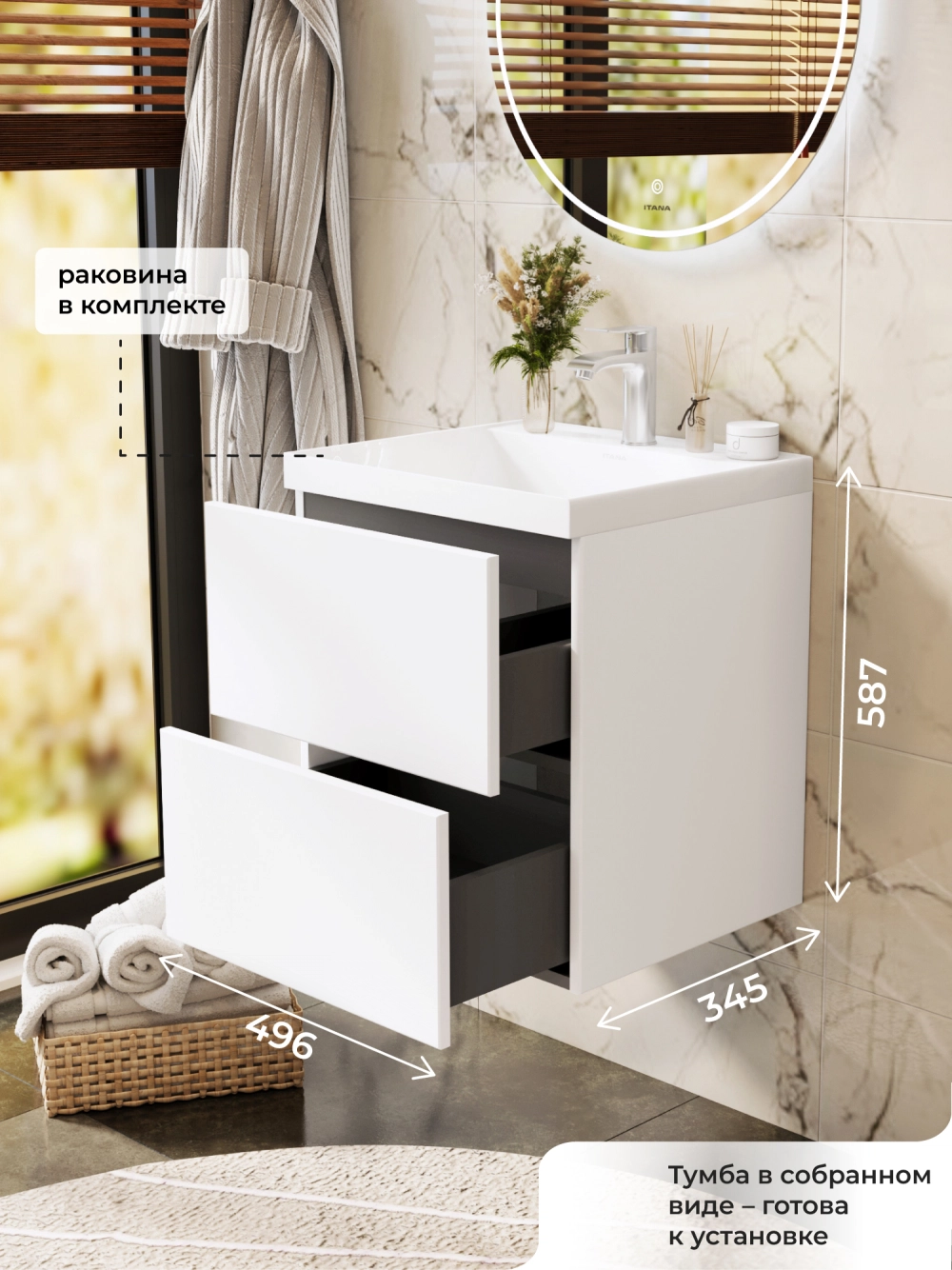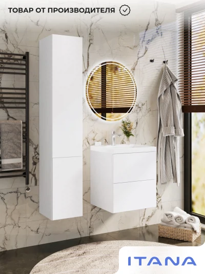 Тумба с раковиной подвесная Итана Icon 50 с выдвижными ящиками Белый глянец