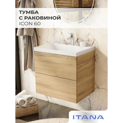 Тумба с раковиной подвесная Итана Icon 60 с выдвижными ящиками Дуб Мавелла Голд