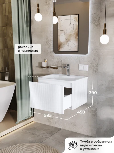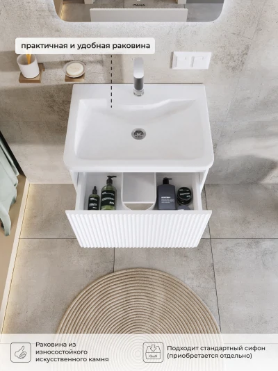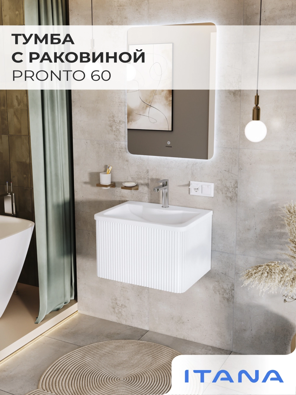 Тумба с раковиной подвесная Итана Pronto 60 с выдвижным ящиком Бланж
