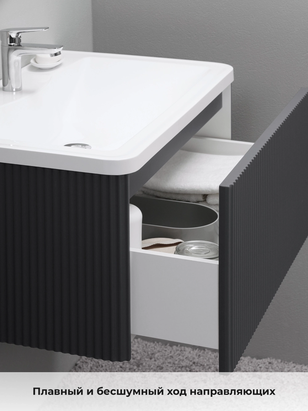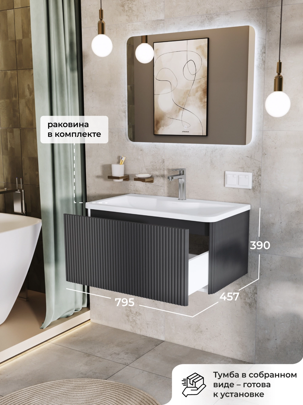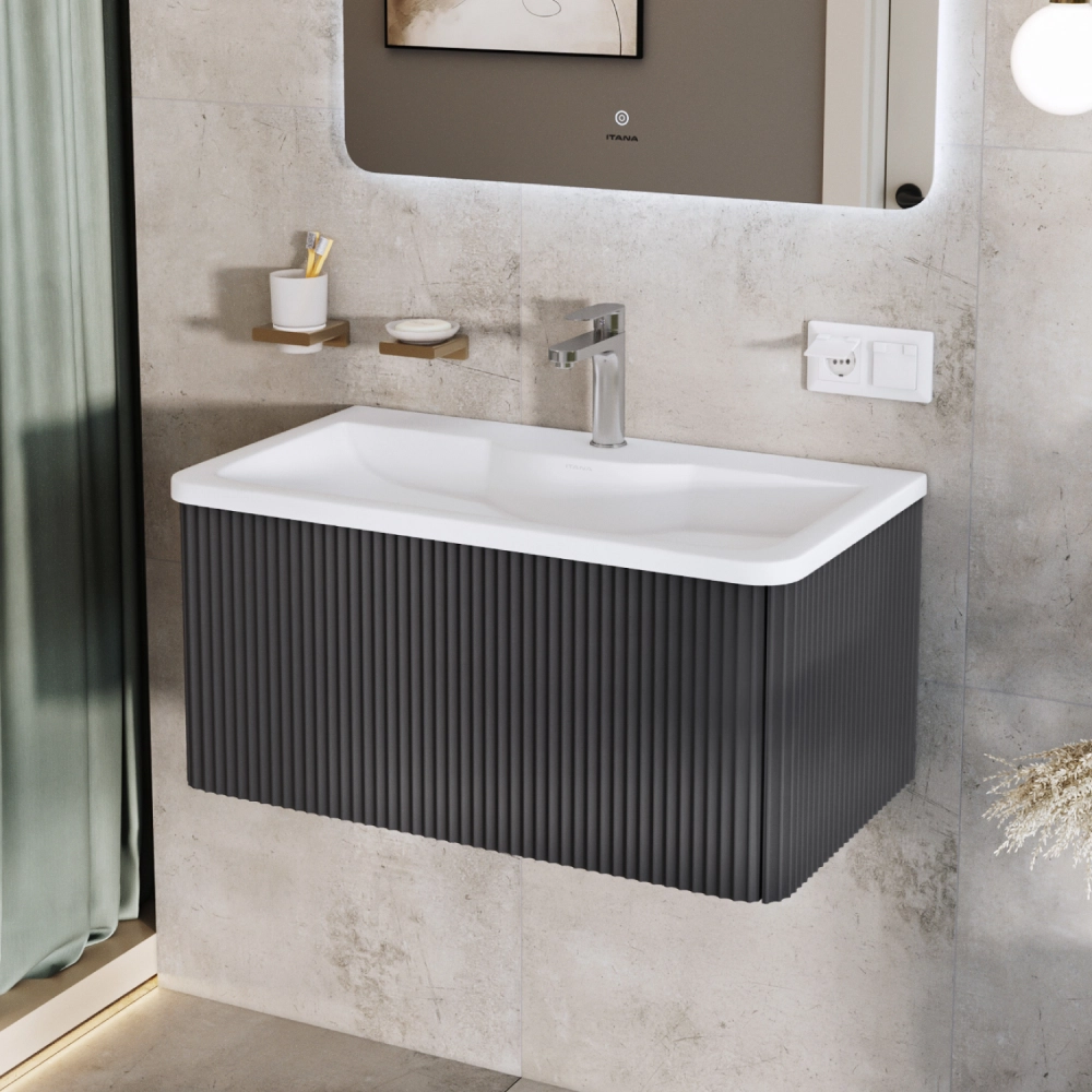 Тумба с раковиной подвесная Итана Pronto 80 с выдвижным ящиком Графит