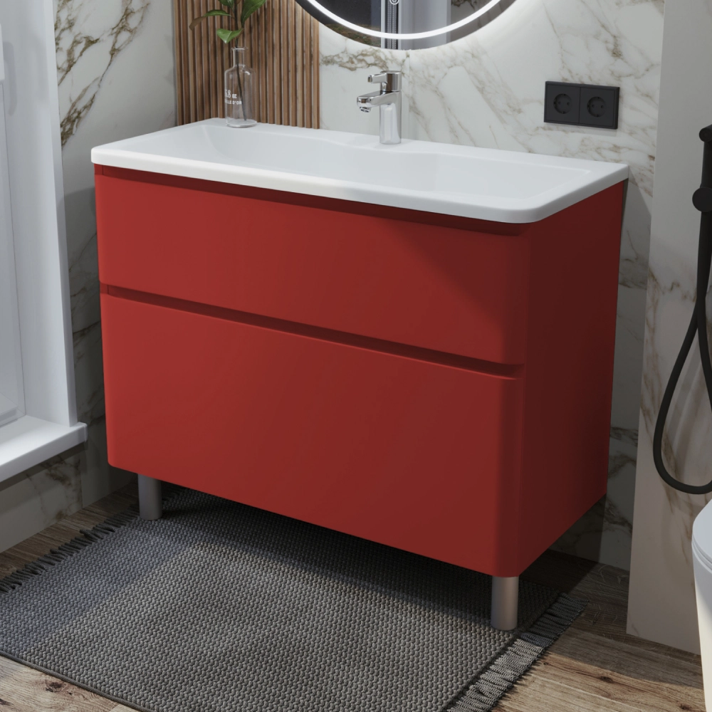 Тумба с раковиной в ванную ИТАНА Роберто 100, напольная, Красный