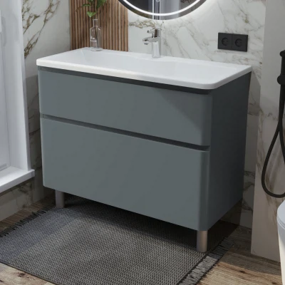 Тумба с раковиной в ванную ИТАНА Роберто 100, напольная, Серый