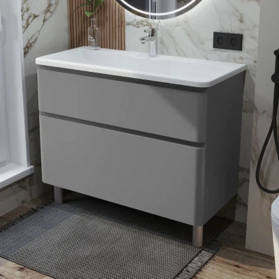 Тумба с раковиной в ванную ИТАНА Роберто 100, напольная, Серый