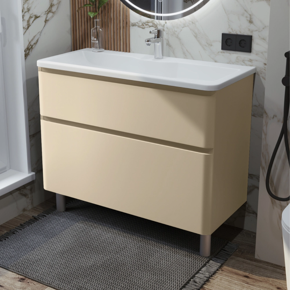 Тумба с раковиной в ванную ИТАНА Роберто 100, напольная, Светлая слоновая кость