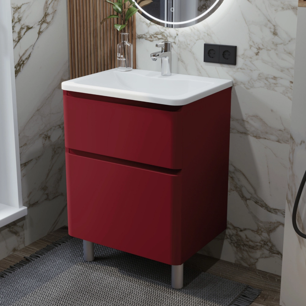 Тумба с раковиной в ванную ИТАНА Роберто 60, напольная, Красный