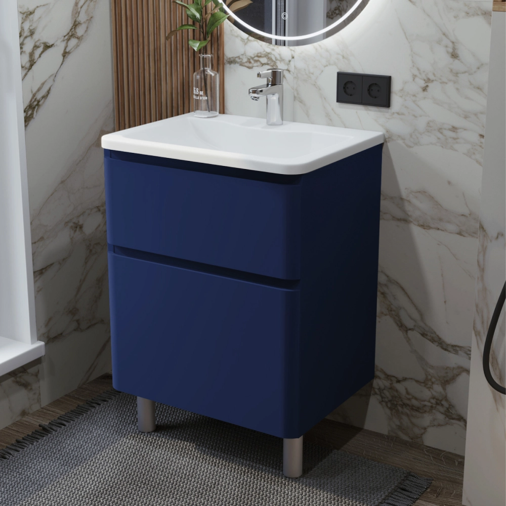 Тумба с раковиной в ванную ИТАНА Роберто 60, напольная, Синий