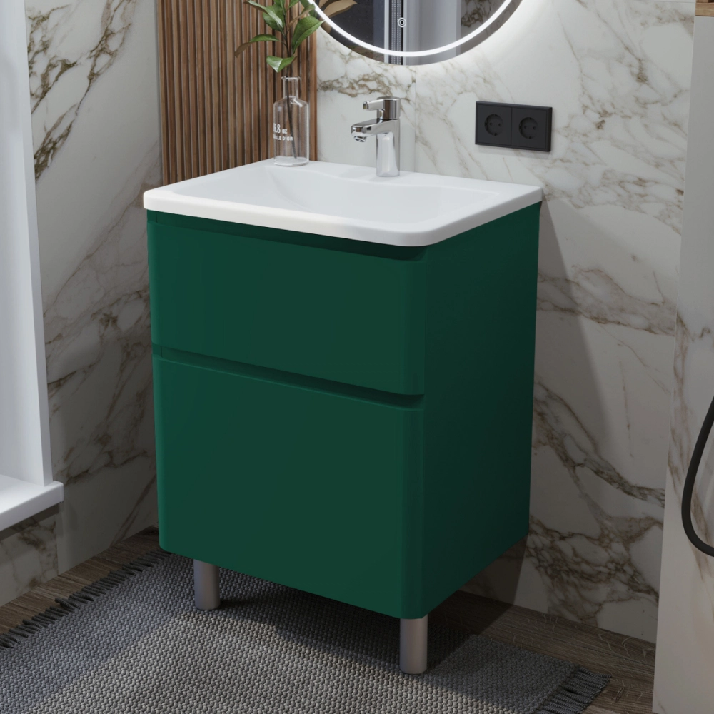 Тумба с раковиной в ванную ИТАНА Роберто 60, напольная, Зелёный