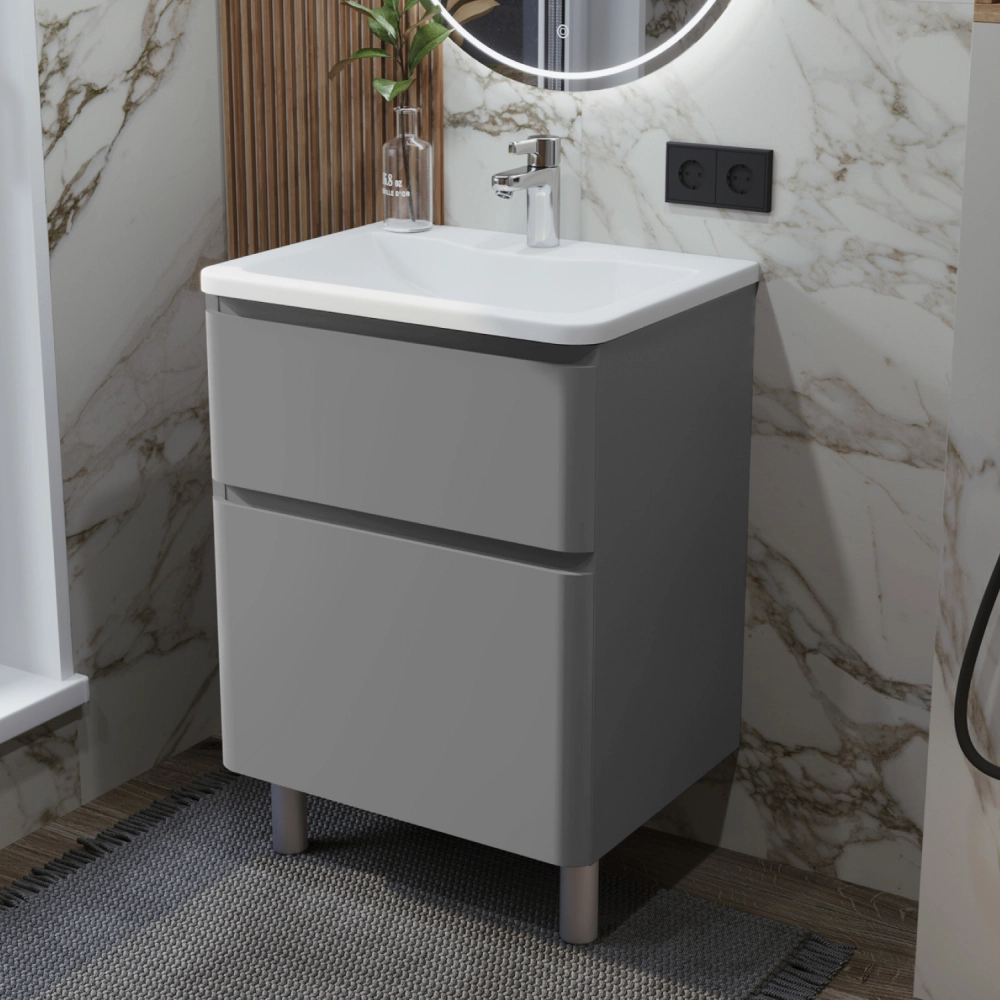 Тумба с раковиной в ванную ИТАНА Роберто 70, напольная, Серый