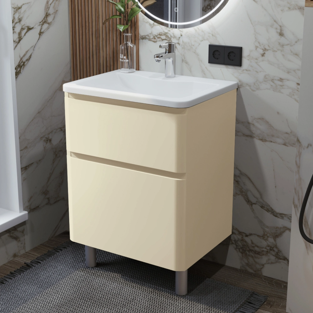 Тумба с раковиной в ванную ИТАНА Роберто 70, напольная, Жемчужно белый