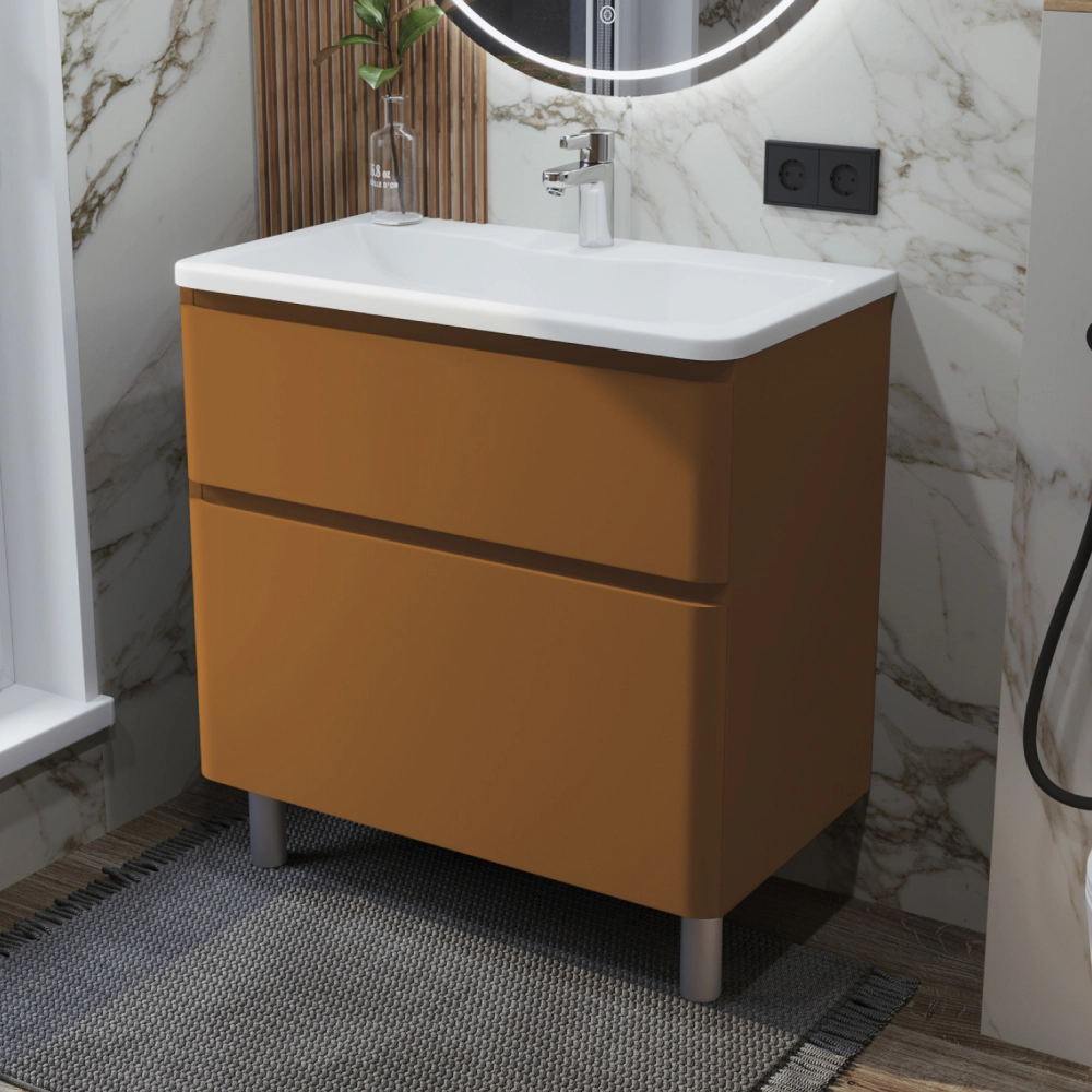 Тумба с раковиной в ванную ИТАНА Роберто 80, напольная, Коричневый
