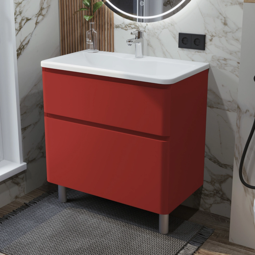 Тумба с раковиной в ванную ИТАНА Роберто 80, напольная, Красный