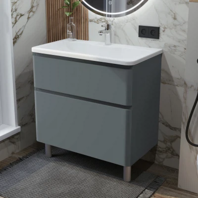 Тумба с раковиной в ванную ИТАНА Роберто 80, напольная, Серый