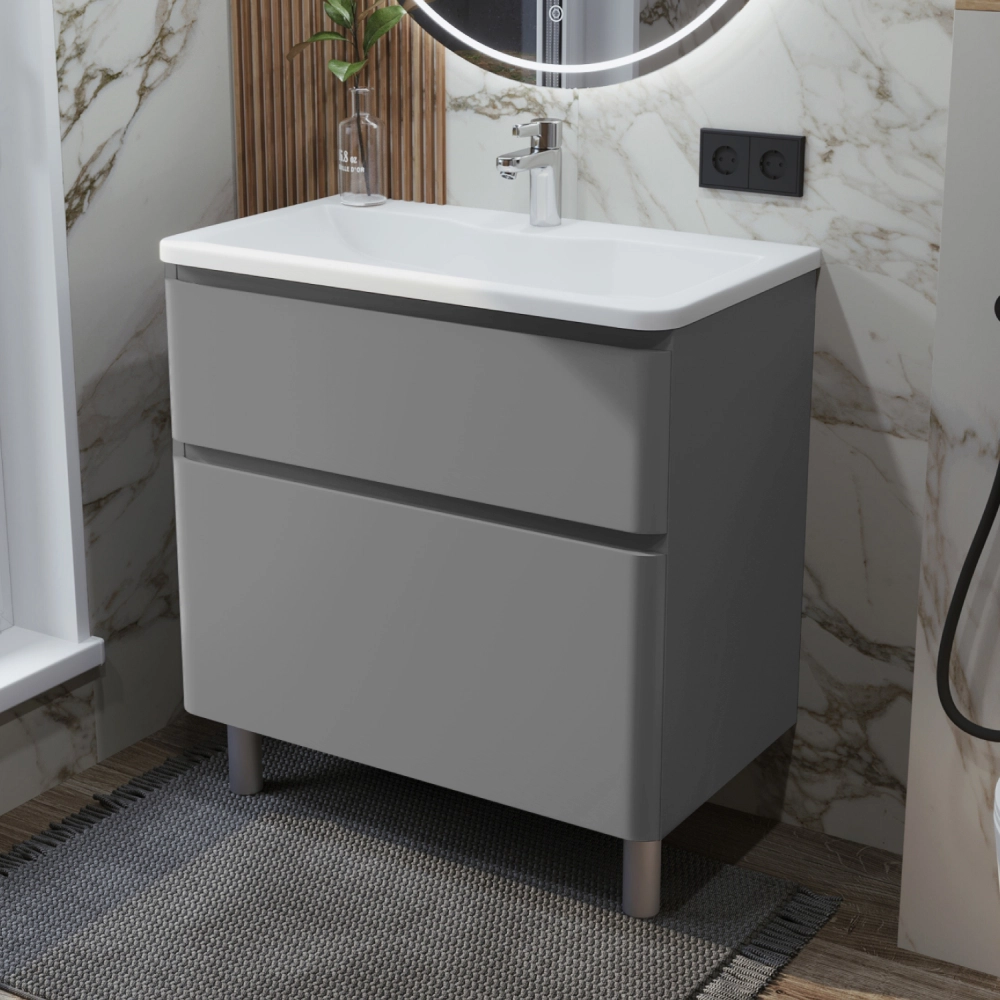 Тумба с раковиной в ванную ИТАНА Роберто 80, напольная, Серый
