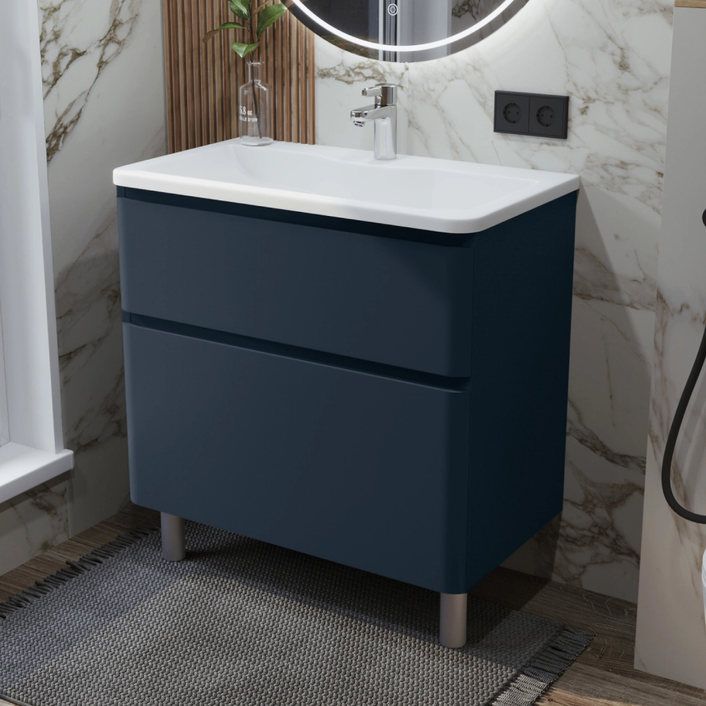 Тумба с раковиной в ванную ИТАНА Роберто 80, напольная, Синий