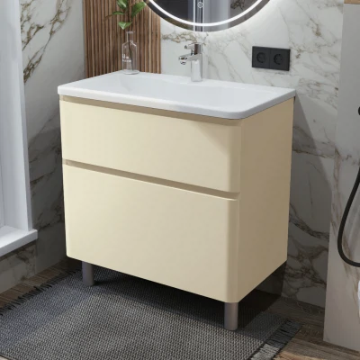 Тумба с раковиной в ванную ИТАНА Роберто 80, напольная, Жемчужно белый