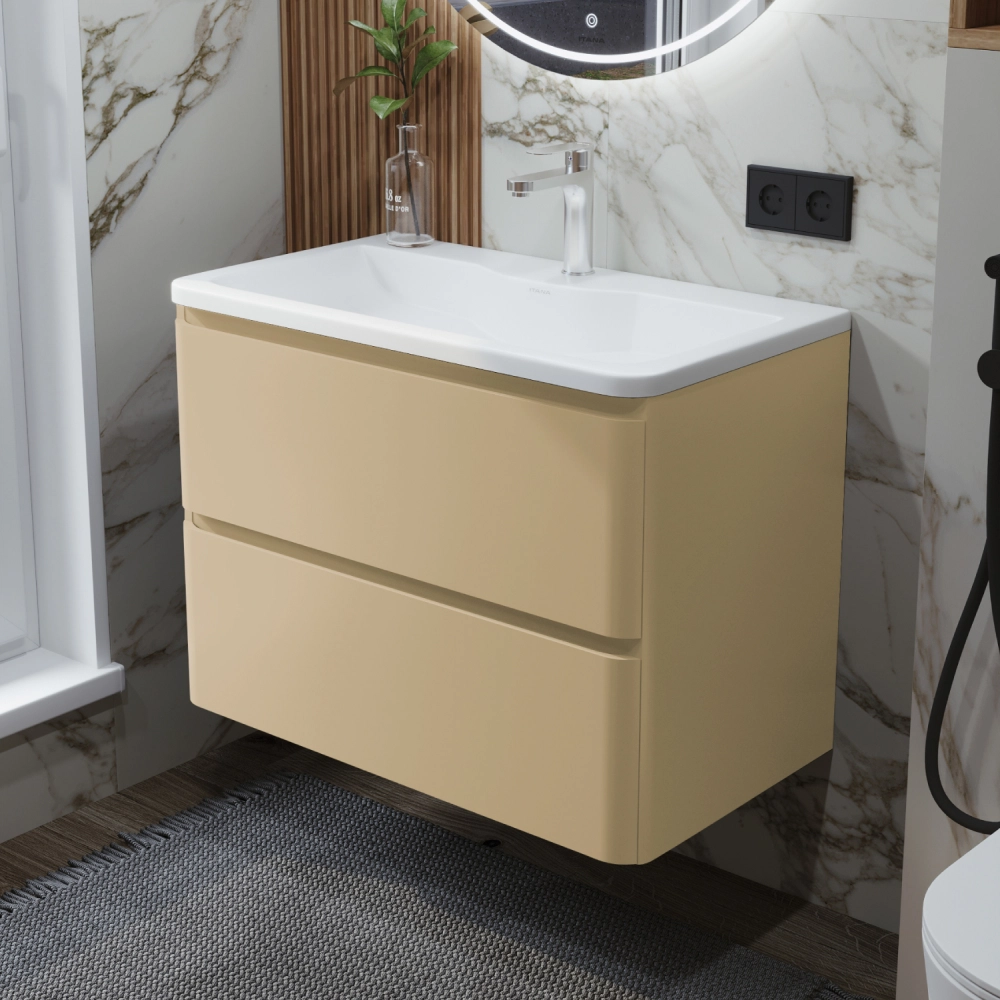 Тумба с раковиной в ванную ИТАНА Роберто 80, подвесная, Бежевый