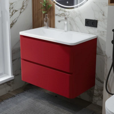 Тумба с раковиной в ванную ИТАНА Роберто 80, подвесная, Красный