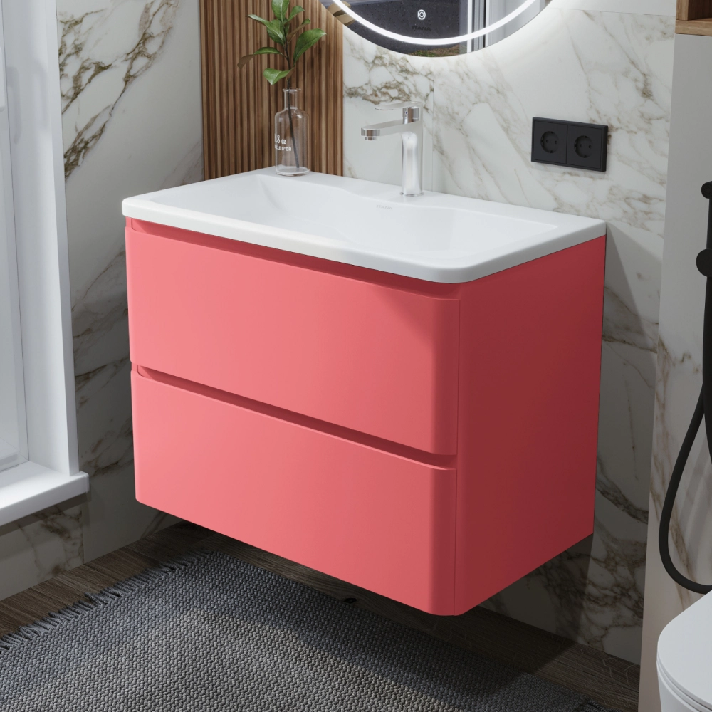 Тумба с раковиной в ванную ИТАНА Роберто 80, подвесная, Розовый