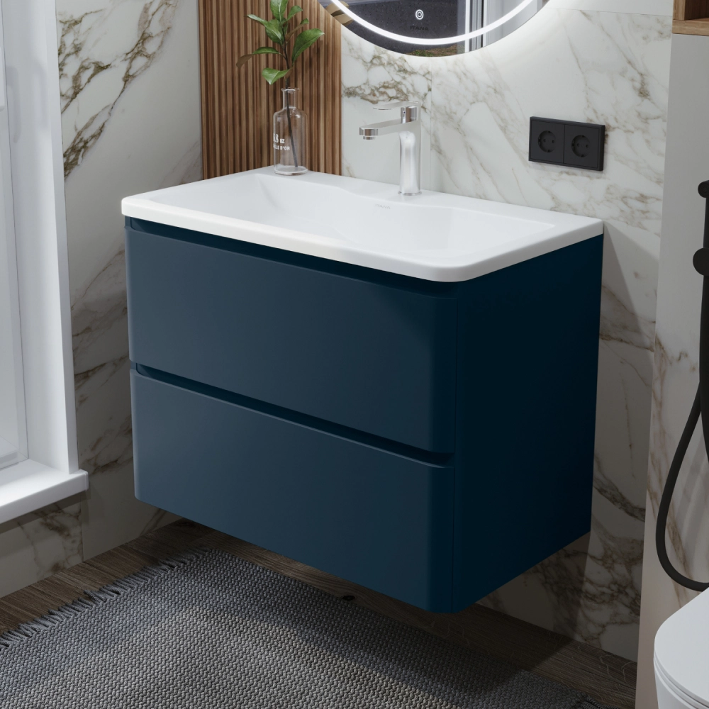 Тумба с раковиной в ванную ИТАНА Роберто 80, подвесная, Синий