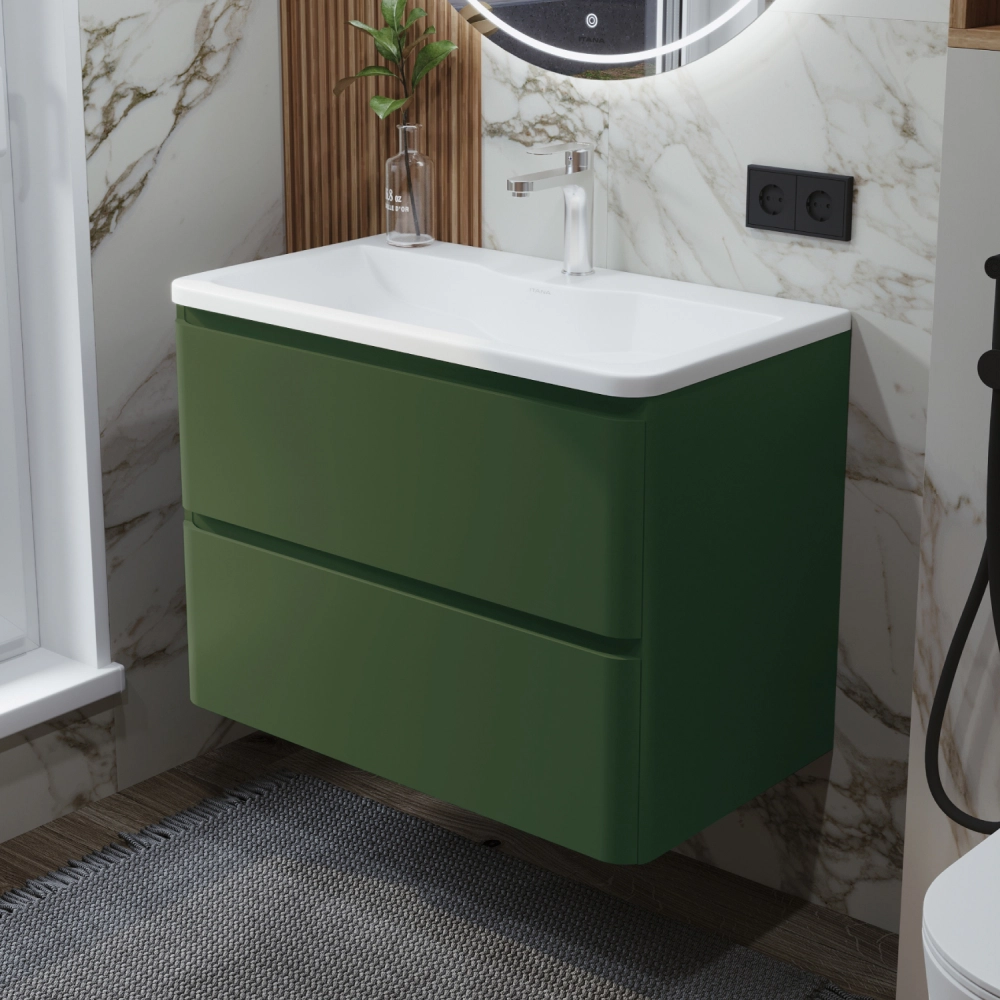 Тумба с раковиной в ванную ИТАНА Роберто 80, подвесная, Зеленый