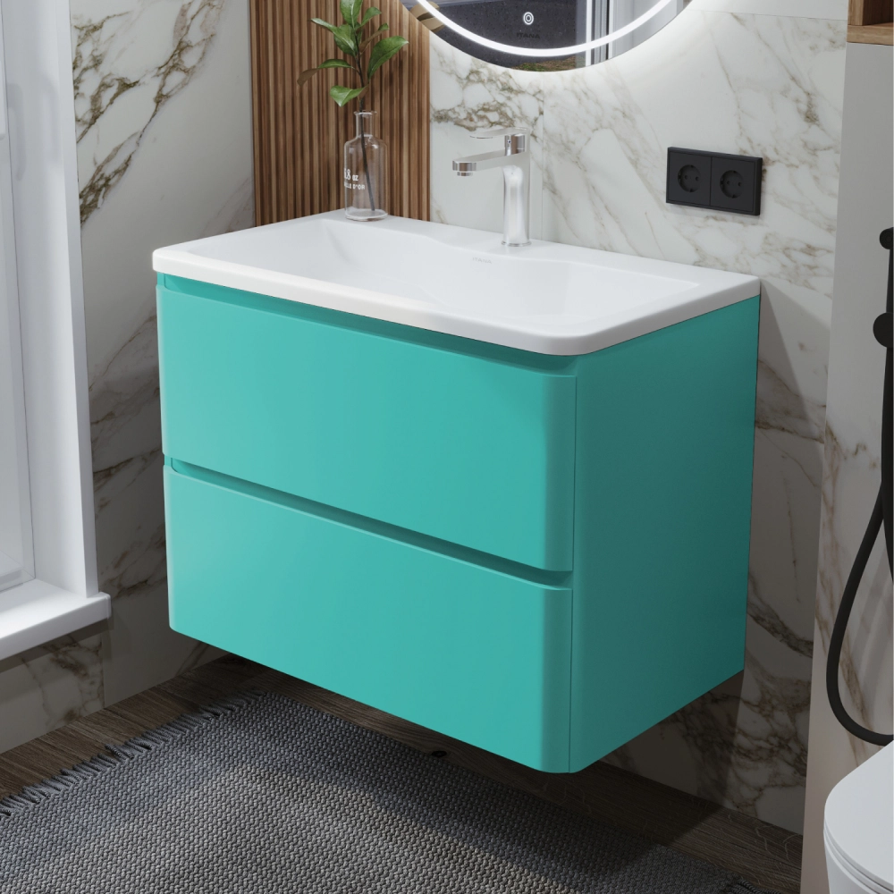 Тумба с раковиной в ванную ИТАНА Роберто 80, подвесная, Зелёный