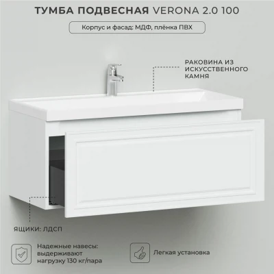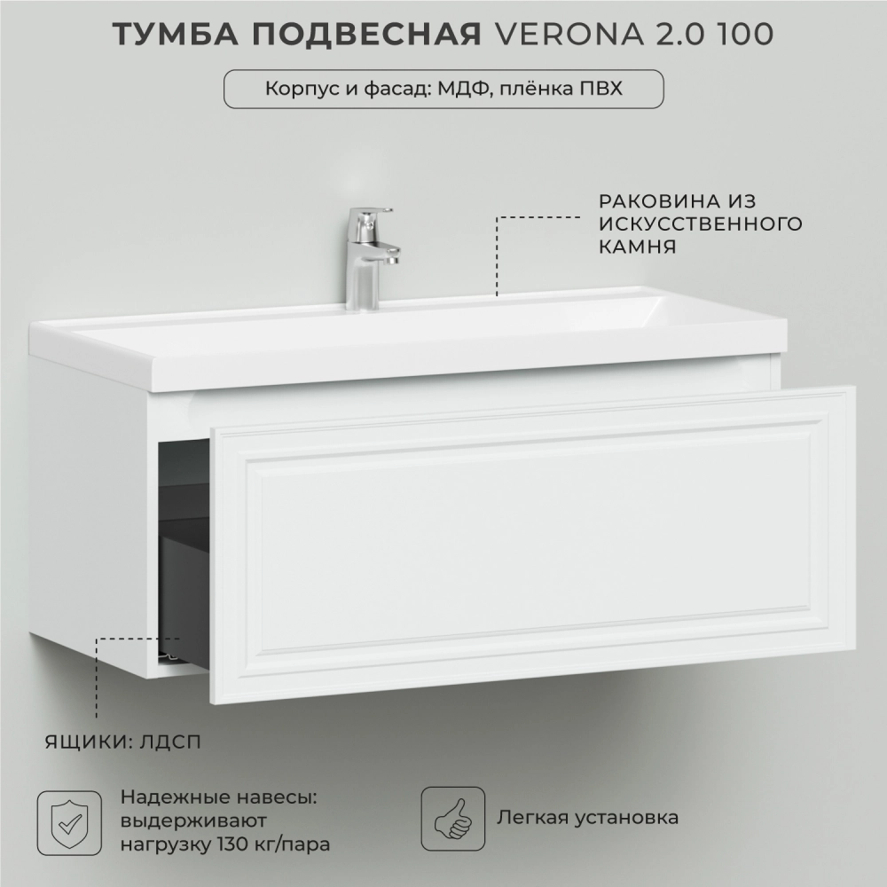 Тумба с раковиной Итана Verona 2.0 100 с выдвижным ящиком Бланж