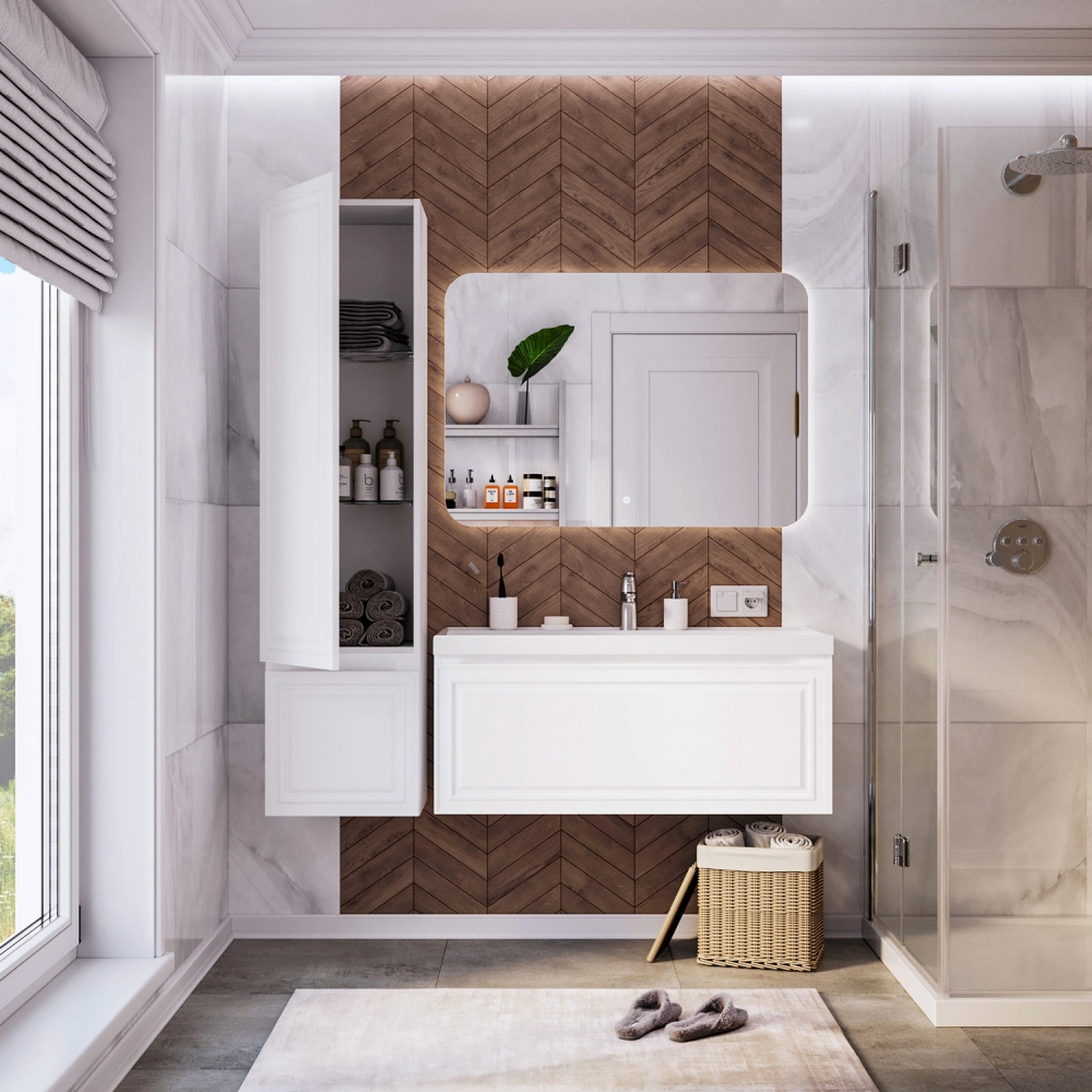 Подвесная тумба с раковиной из коллекции Verona станет настоящим украшением ванной комнаты в современном скандинавском стиле. Навесной способ установки тумбы в ванную дает возможность не только визуально увеличить пространство, но и обеспечивает быстрый и удобный доступ для уборки. Размеры подвесной тумбы с раковиной 1002х452х448 - идеальный выбор для ванной комнаты или туалета. Тумба для ванны изготовлена из прочного МДФ, поэтому выдерживает высокие эксплуатационные нагрузки. Качественная фурнитура с доводчиками обеспечивает легкое открывание и плавное закрывание ящика. Вырез под сифон универсальный, для любого типа. Благодаря своей конструкции тумба в ванную обеспечивает удобный доступ к раковине и позволяет скрыть коммуникации. Тумба с раковиной в ванную оснащена удобным ящиком для хранения, что позволяет разместить всё необходимое под рукой. Ручки интегрированы в фасад дверки шкафчика, что исключает возможность случайного удара о фурнитуру. Для точного выбора подвесной тумбы с раковиной в ванную комнату рекомендуем обратиться к схеме замеров, которая находится на третьем фото в карточке товара, размеры изделия могут отличаться +/-1 см в связи со спецификой производства. Тумба для ванной доставляется в предварительно собранном виде, надежно упакована.