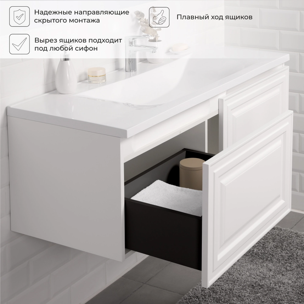 Тумба с раковиной Итана Verona 2.0 120 с выдвижными ящиками Бланж