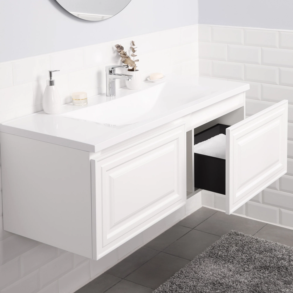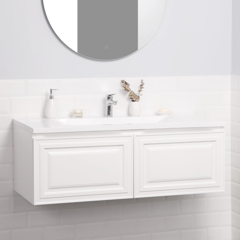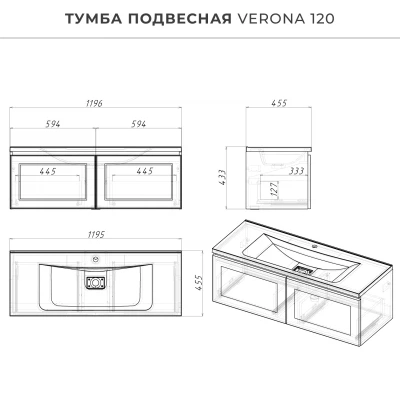 Подвесная тумба с раковиной из коллекции Verona станет настоящим украшением ванной комнаты в современном скандинавском стиле. Навесной способ установки тумбы в ванную дает возможность не только визуально увеличить пространство, но и обеспечивает быстрый и удобный доступ для уборки. Размеры подвесной тумбы с раковиной 1196х455х433 - идеальный выбор для ванной комнаты или туалета. Тумба для ванны изготовлена из прочного МДФ, поэтому выдерживает высокие эксплуатационные нагрузки. Корпус и фасады тумбы для ванной покрыты матовой пленкой, что обеспечивает дополнительную защиту тумбы с раковиной от влаги и перепадов температуры. Качественная фурнитура с доводчиками обеспечивает легкое открывание и плавное закрывание ящика. Вырез под сифон универсальный, для любого типа. Благодаря своей конструкции тумба в ванную обеспечивает удобный доступ к раковине и позволяет скрыть коммуникации. Тумба с раковиной в ванную оснащена удобным ящиком для хранения, что позволяет разместить всё необходимое под рукой. Ручки интегрированы в фасад дверки шкафчика, что исключает возможность случайного удара о фурнитуру. Для точного выбора подвесной тумбы с раковиной в ванную комнату рекомендуем обратиться к схеме замеров, которая находится на третьем фото в карточке товара, размеры изделия могут отличаться +/-1 см в связи со спецификой производства. Тумба для ванной доставляется в предварительно собранном виде, надежно упакована.