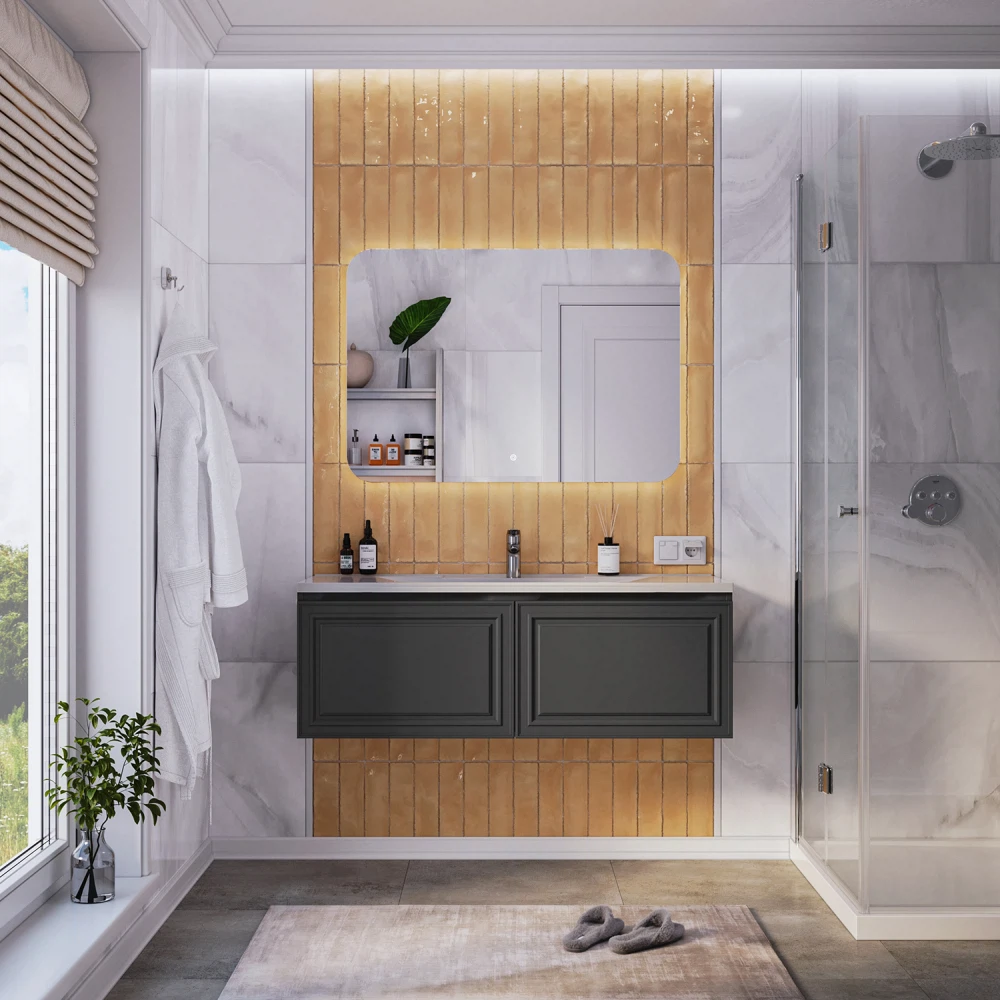 Подвесная тумба с раковиной из коллекции Verona станет настоящим украшением ванной комнаты в современном скандинавском стиле. Навесной способ установки тумбы в ванную дает возможность не только визуально увеличить пространство, но и обеспечивает быстрый и удобный доступ для уборки. Размеры подвесной тумбы с раковиной 1196х455х433 - идеальный выбор для ванной комнаты или туалета. Тумба для ванны изготовлена из прочного МДФ, поэтому выдерживает высокие эксплуатационные нагрузки. Корпус и фасады тумбы для ванной покрыты матовой пленкой, что обеспечивает дополнительную защиту тумбы с раковиной от влаги и перепадов температуры. Качественная фурнитура с доводчиками обеспечивает легкое открывание и плавное закрывание ящика. Вырез под сифон универсальный, для любого типа. Благодаря своей конструкции тумба в ванную обеспечивает удобный доступ к раковине и позволяет скрыть коммуникации. Тумба с раковиной в ванную оснащена удобным ящиком для хранения, что позволяет разместить всё необходимое под рукой. Ручки интегрированы в фасад дверки шкафчика, что исключает возможность случайного удара о фурнитуру. Для точного выбора подвесной тумбы с раковиной в ванную комнату рекомендуем обратиться к схеме замеров, которая находится на третьем фото в карточке товара, размеры изделия могут отличаться +/-1 см в связи со спецификой производства. Тумба для ванной доставляется в предварительно собранном виде, надежно упакована.