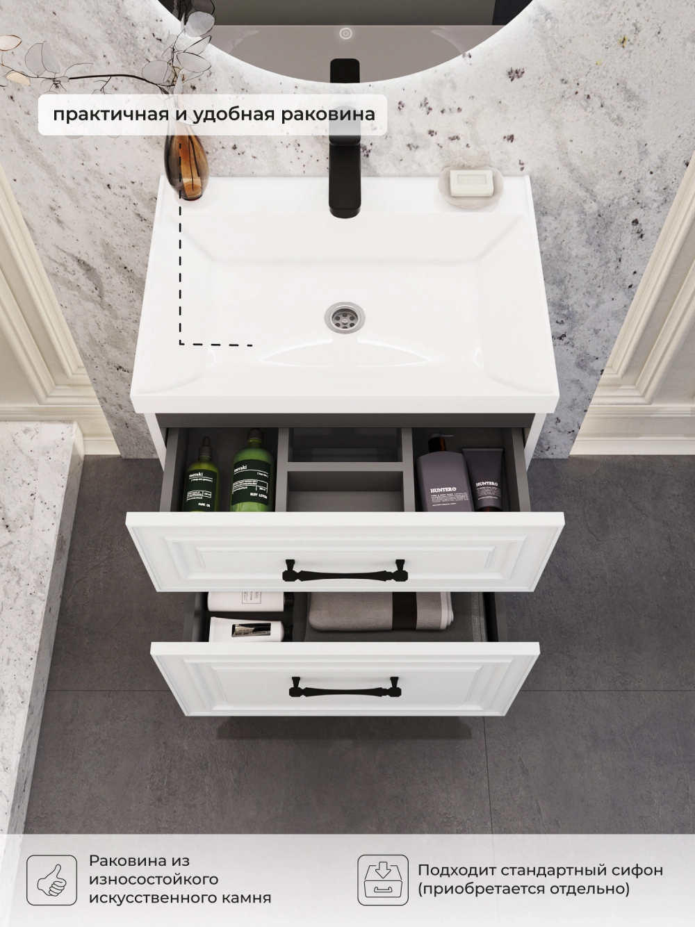 Тумба с раковиной Итана Verona 2.0 60 с выдвижными ящиками Эмаль Белый Матовый