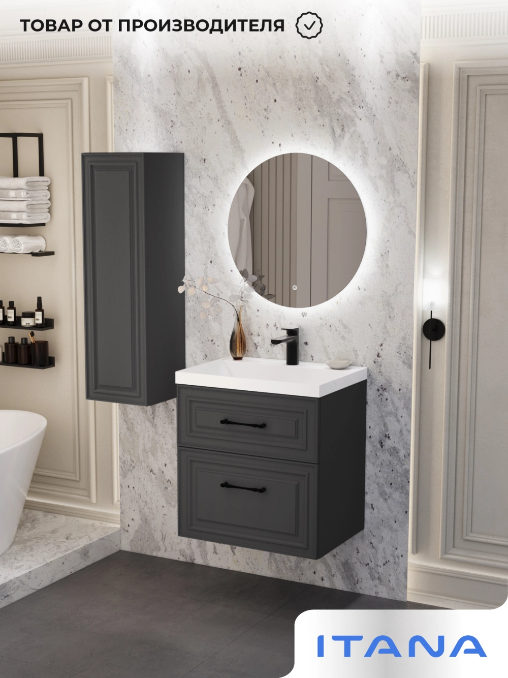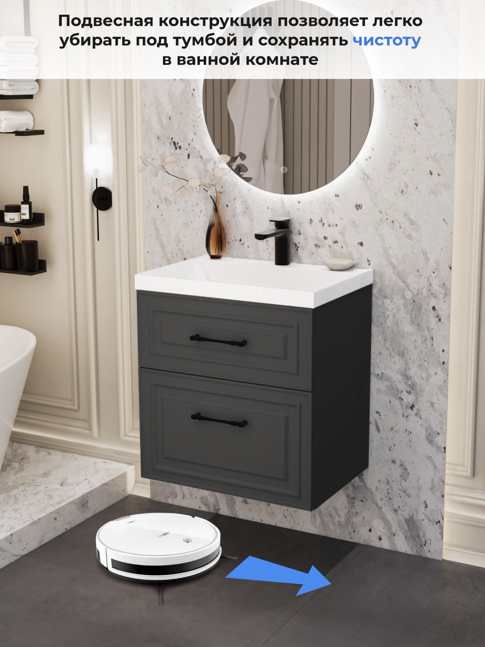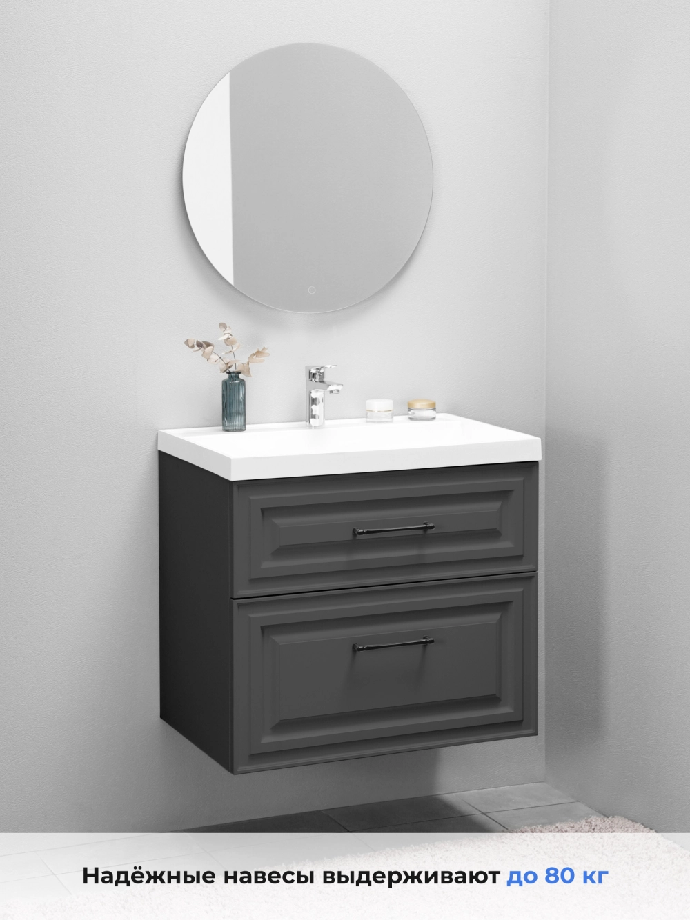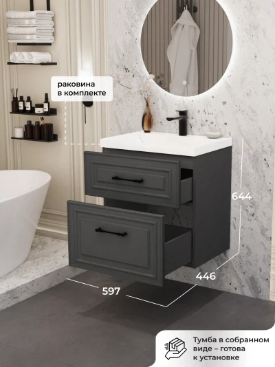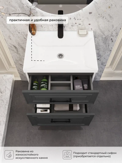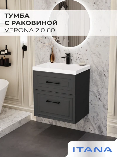 Тумба с раковиной Итана Verona 2.0 60 с выдвижными ящиками Графит