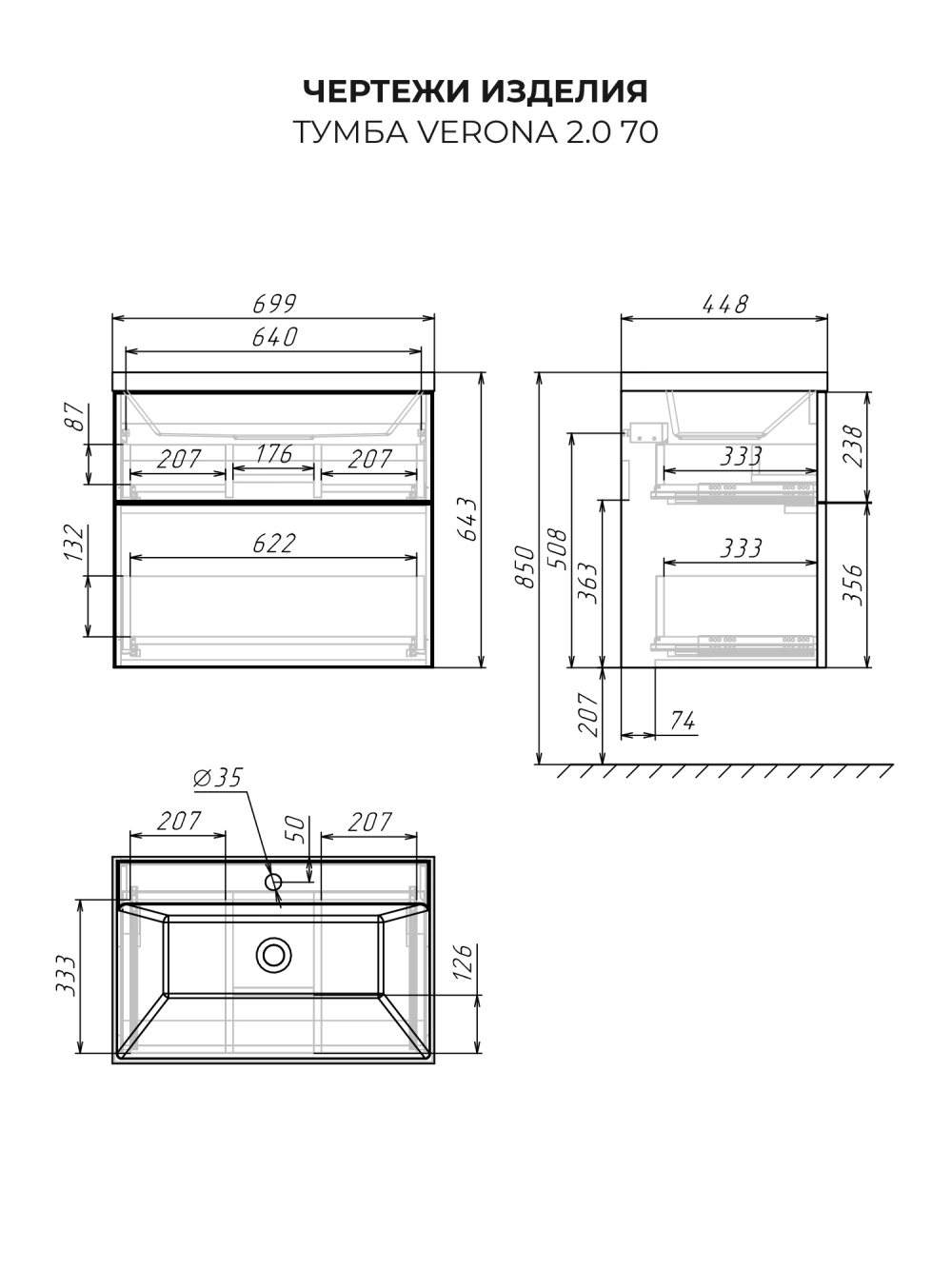 Тумба с раковиной Итана Verona 2.0 70 с выдвижными ящиками Керамик